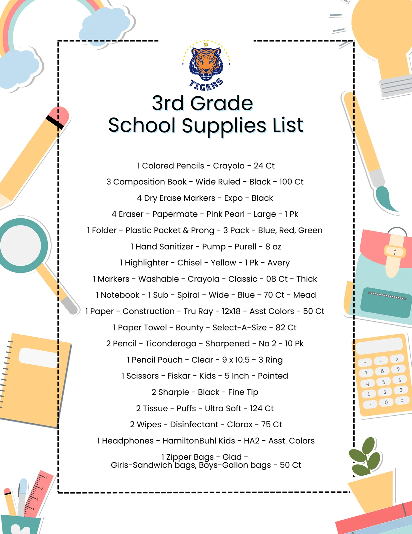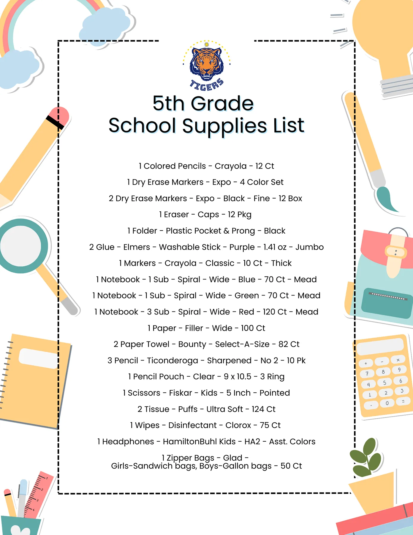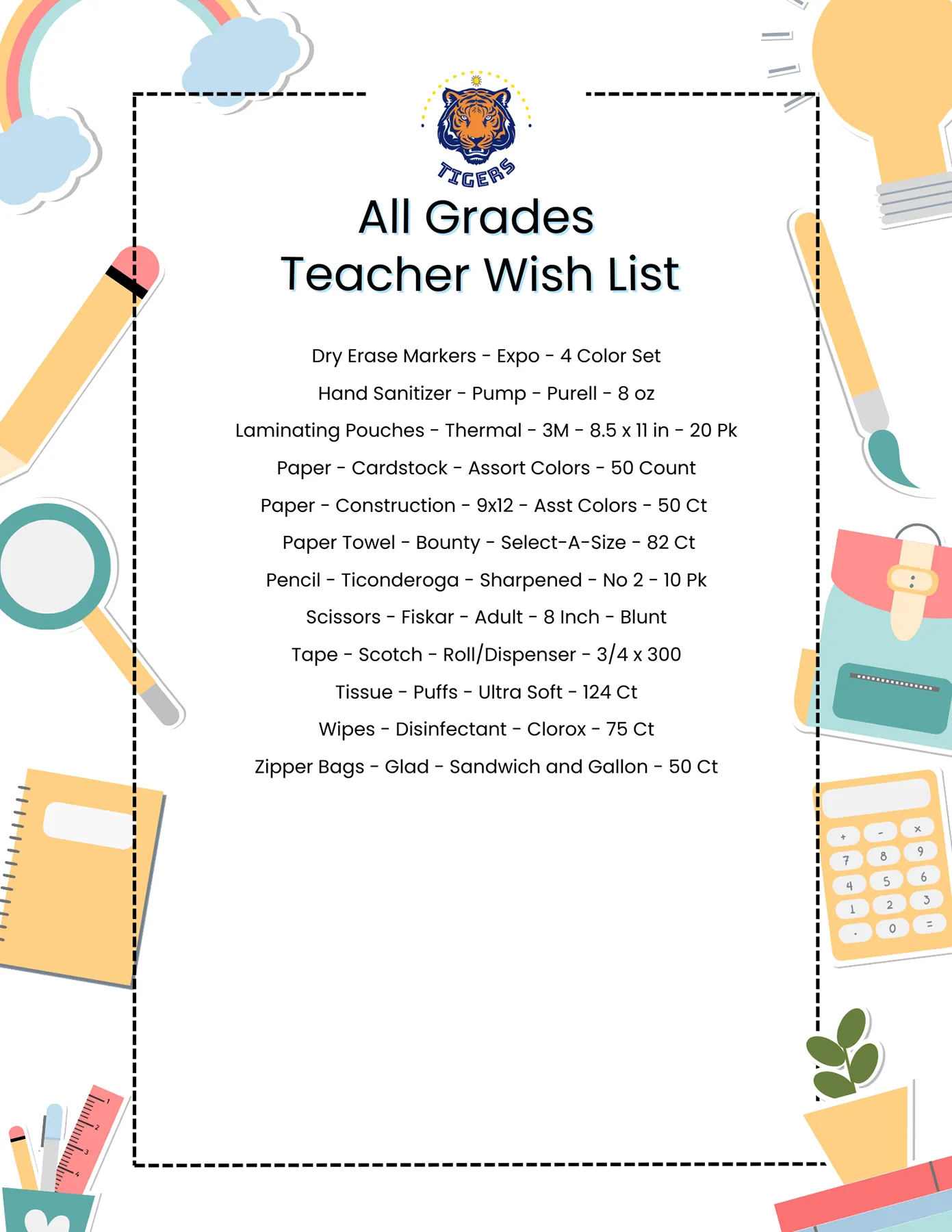 • 4 pre-sharpened boxes of Ticonderoga pencils